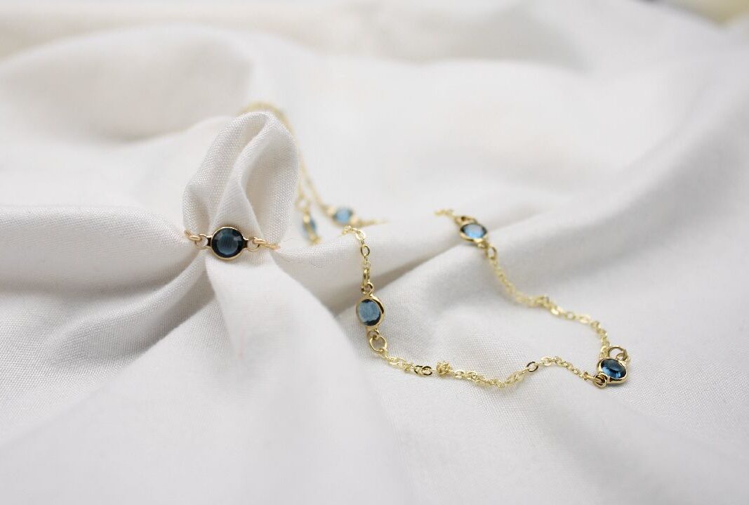 This blue crystal jewelry set handcrafted with unique 14k gold plated sapphire crystals and findings,the perfect addition to any jewelry collection. The blue crystal jewelry set includes one blue crystal wire ring and one dainty blue crystal necklace.