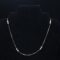 White glass pearls in small circles with the necklace chain of your choice in between in a pattern with a lobster clasp closure and 1 extra inch of chain for fit adjustment of your choice.