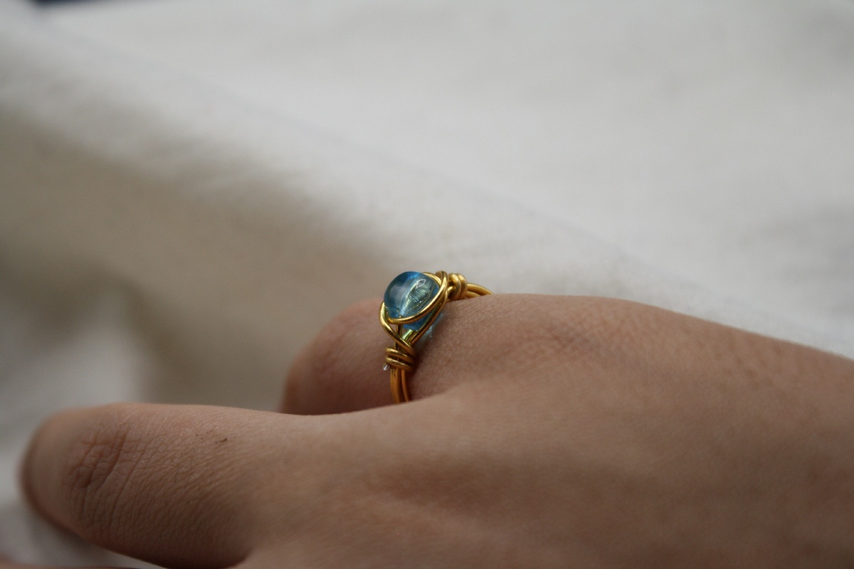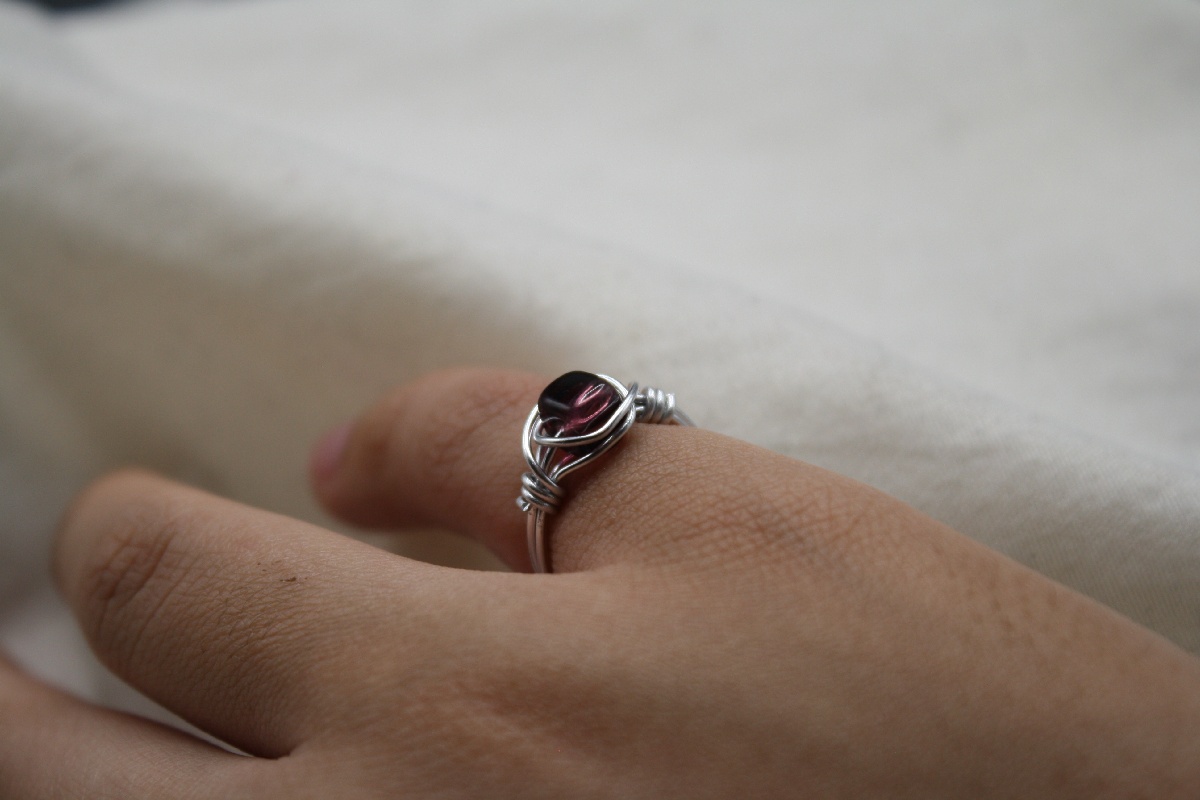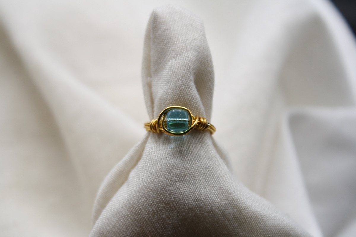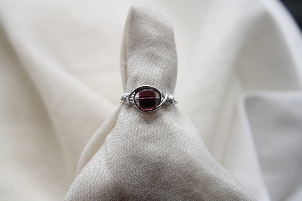 Uniquely handcrafted with wire 20-gauge silver or gold plated tarnish free wire and a colored glass cube bead in the center of the ring.