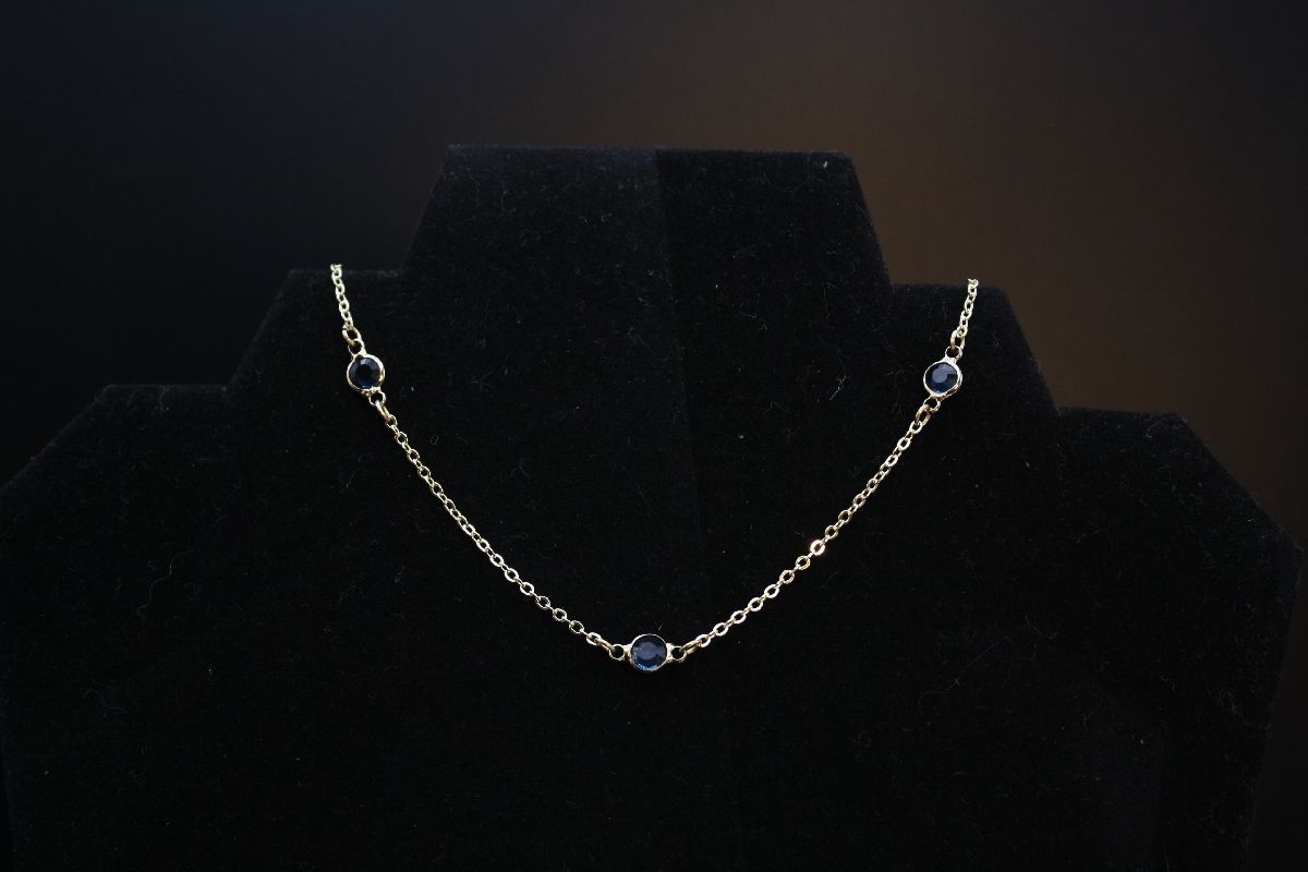 The dainty blue crystal necklace is the perfect everyday necklace to go with any outfit. Each necklace is handcrafted with 14k gold plated findings and chain to allow for longevity of wear. The 14k gold plated sapphire charms all throughout the necklace make it perfect for every occasion.