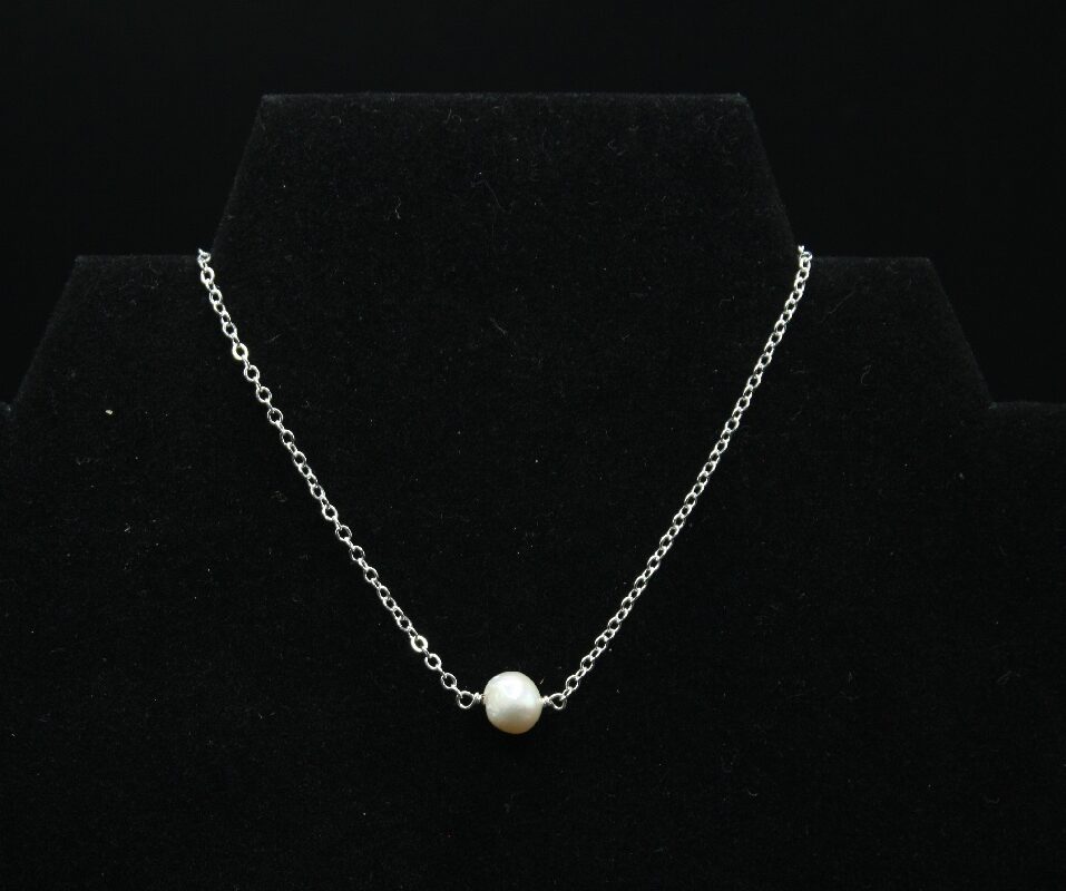 Semi-precious freshwater pearl on a necklace chain of your choice with a lobster clasp closure and 1 extra inch of chain for fit adjustment of your choice.