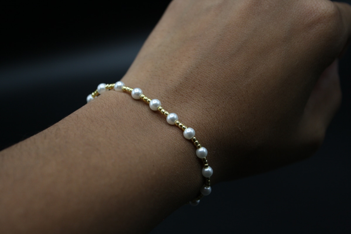 Our Dainty Pearl Stack Bracelet is the perfect dainty addition to your jewelry collection. The white glass pearls are the perfect dainty band to stack with any of you other jewelry or wear on its own. Products are always created with the 14k gold or sterling silver findings.
