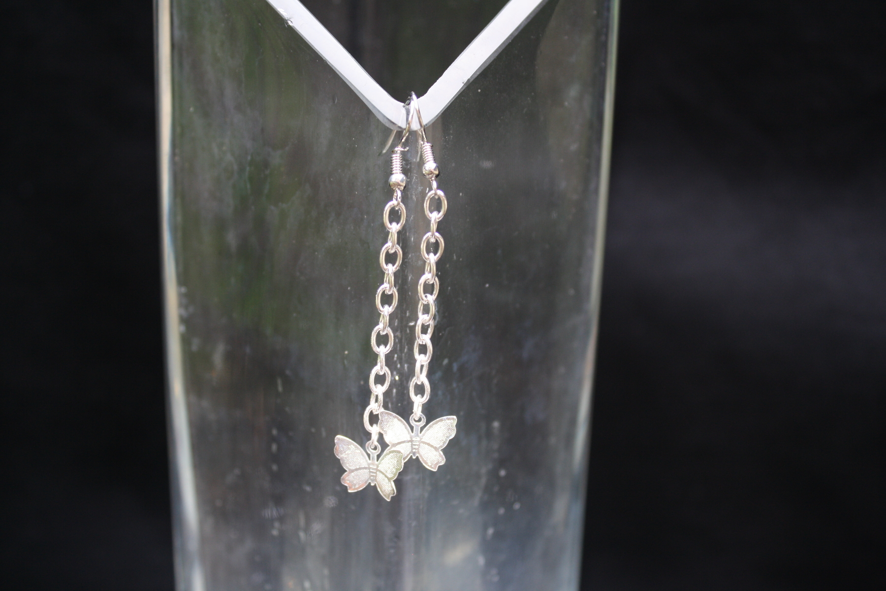 Handcrafted drop chain butterfly earrings.