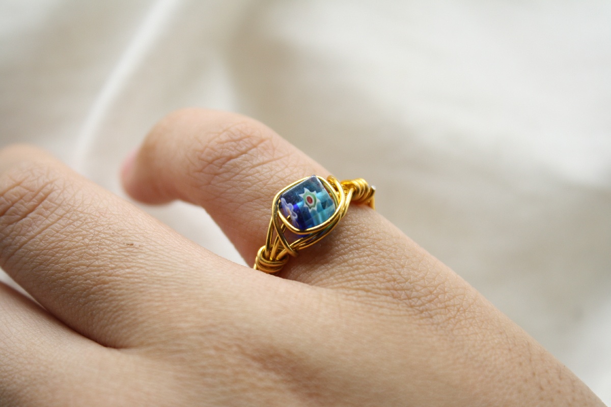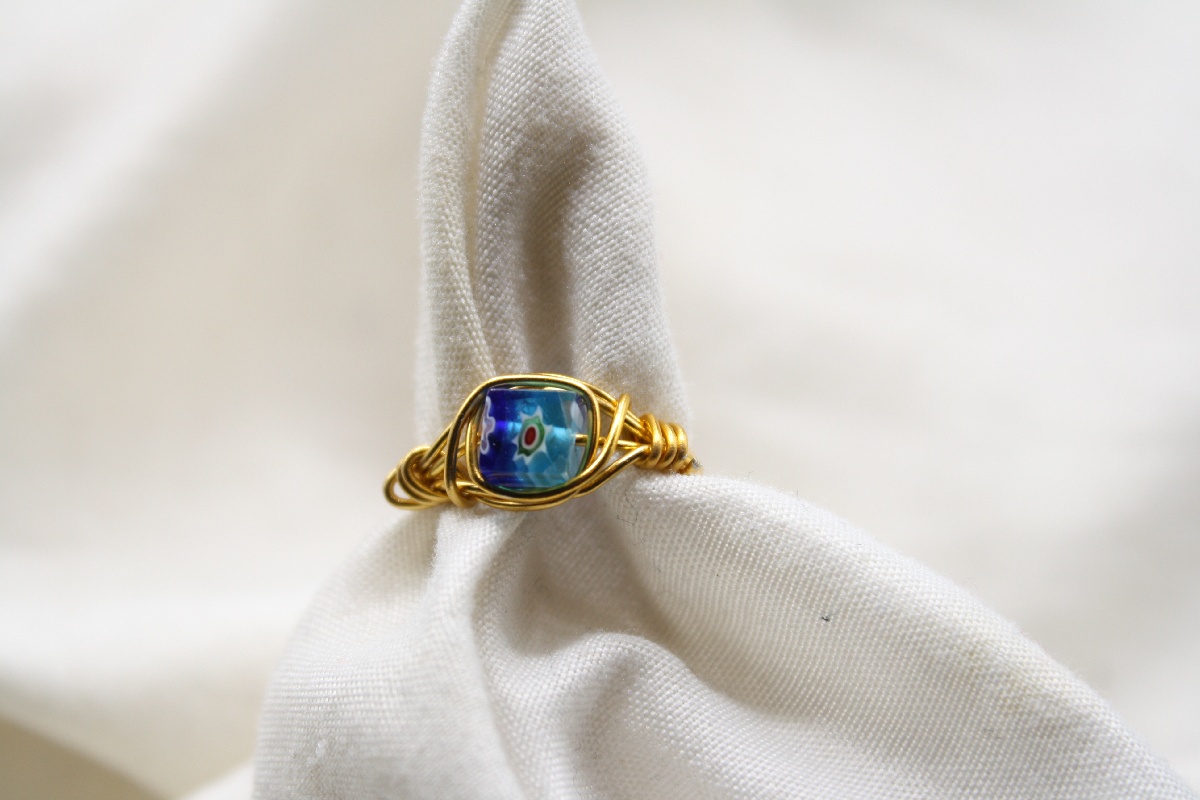 Each ring is unique and hand crafted with blown glass malefori beads in various colors and created with gold or silver plated wire. These rings are the perfect addition to any ring stack and pair flawlessly with every outfit. These rings are perfect to spice up any outfit and add that perfect pop of color!