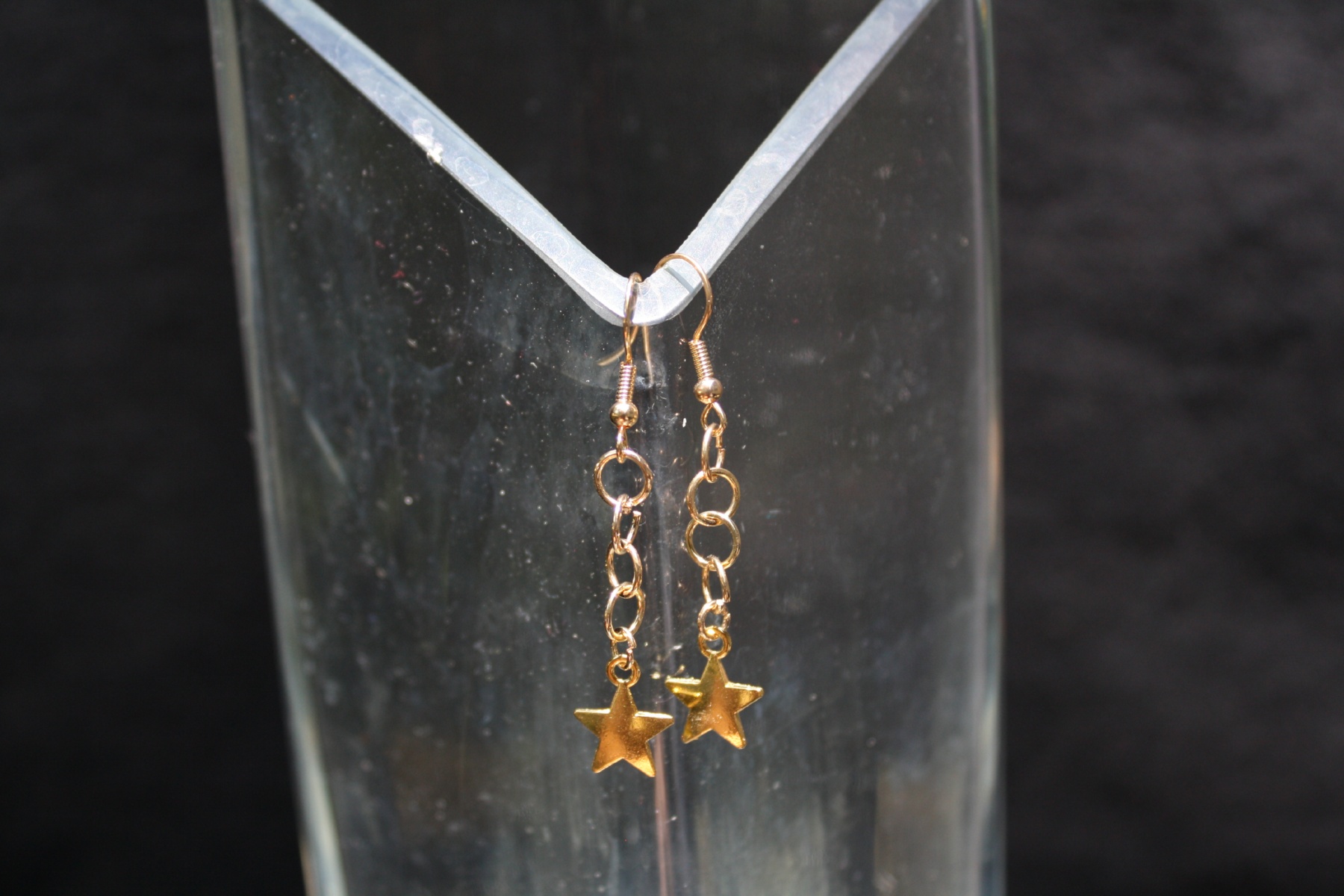 Hypoallergenic gold hook with interlocking loops and dangle gold stars.
