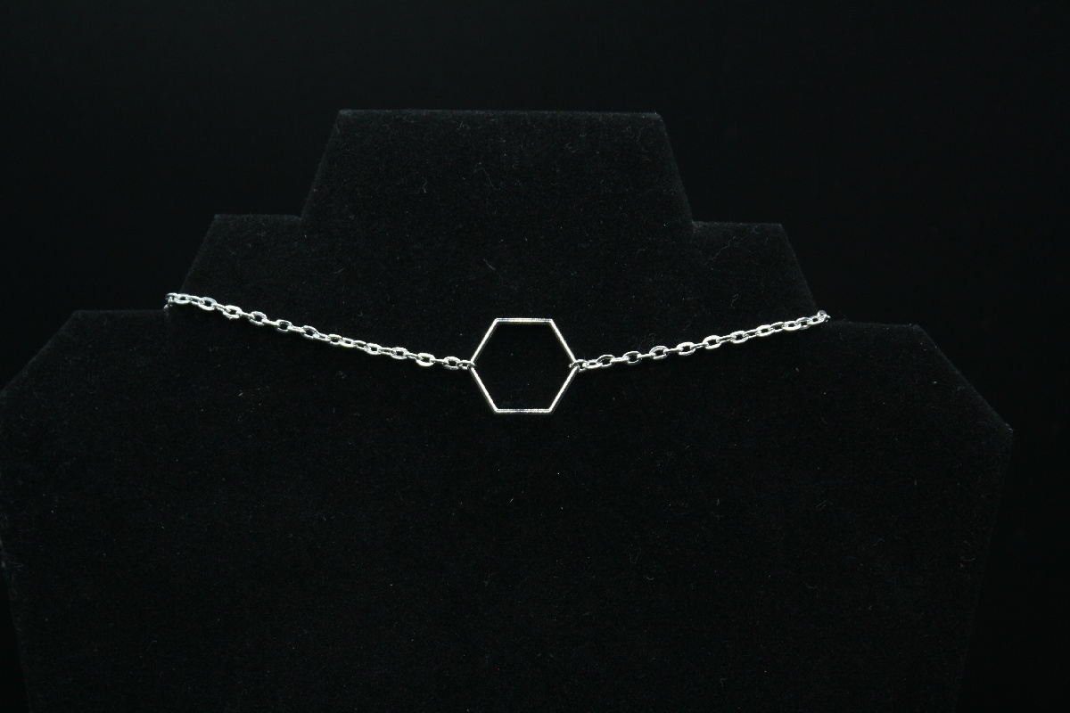 This geometric silver hexagon jewelry set is handcrafted sterling silver-plated charms and findings, the perfect addition to any jewelry collection. The silver hexagon jewelry set includes one silver hexagon necklace as well as one pair of silver hexagon earrings.