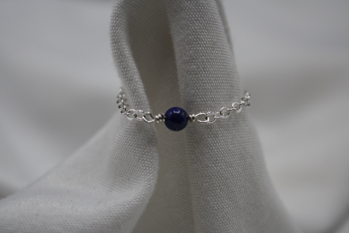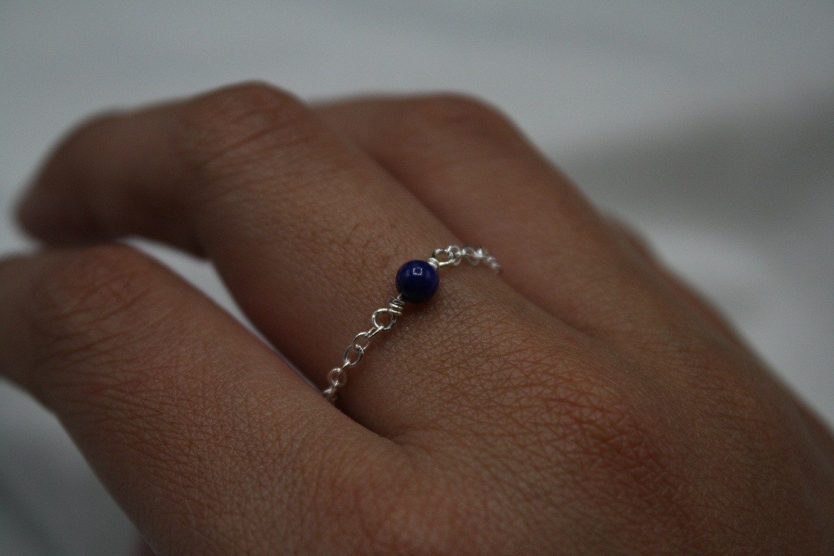 Small precious stone bead with tarnish-free high-quality chain in either gold or silver to fit your ring size.