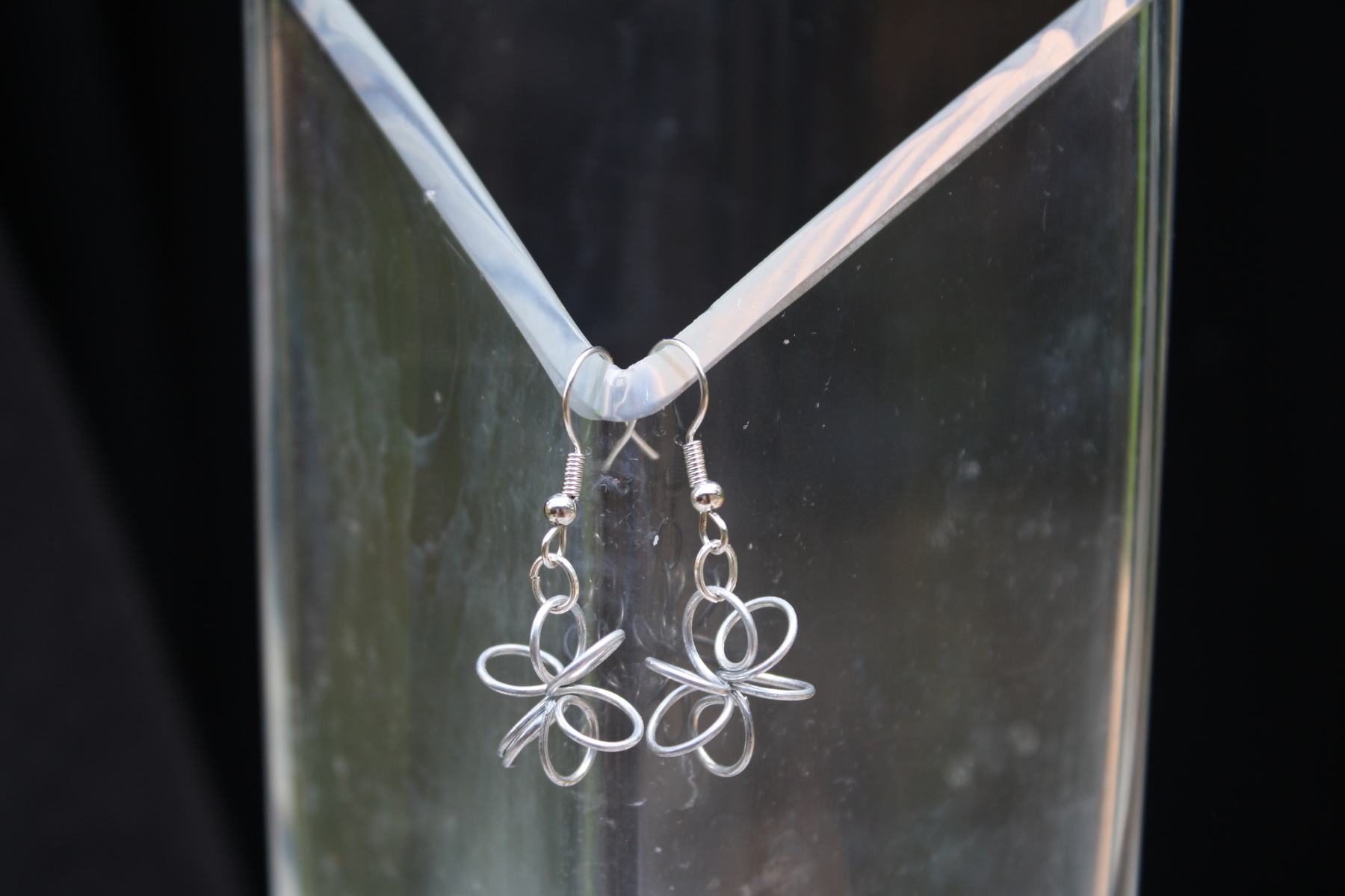 Small hand wrapped wire flowers with hypoallergenic silver hooks.