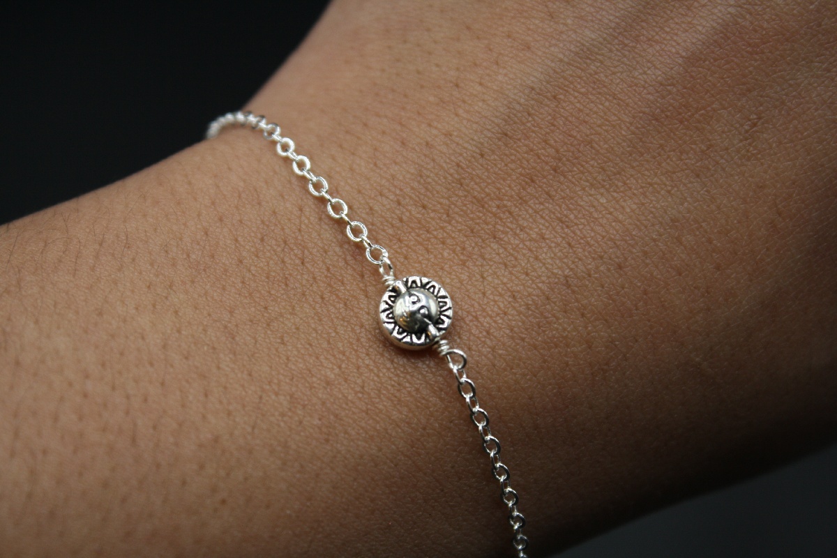 Tarnish-free silver bead with a moon on one side and a sun on the other side with a high-quality dainty silver chain and a lobster clasp.