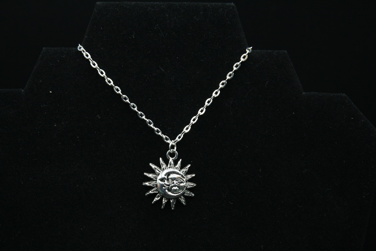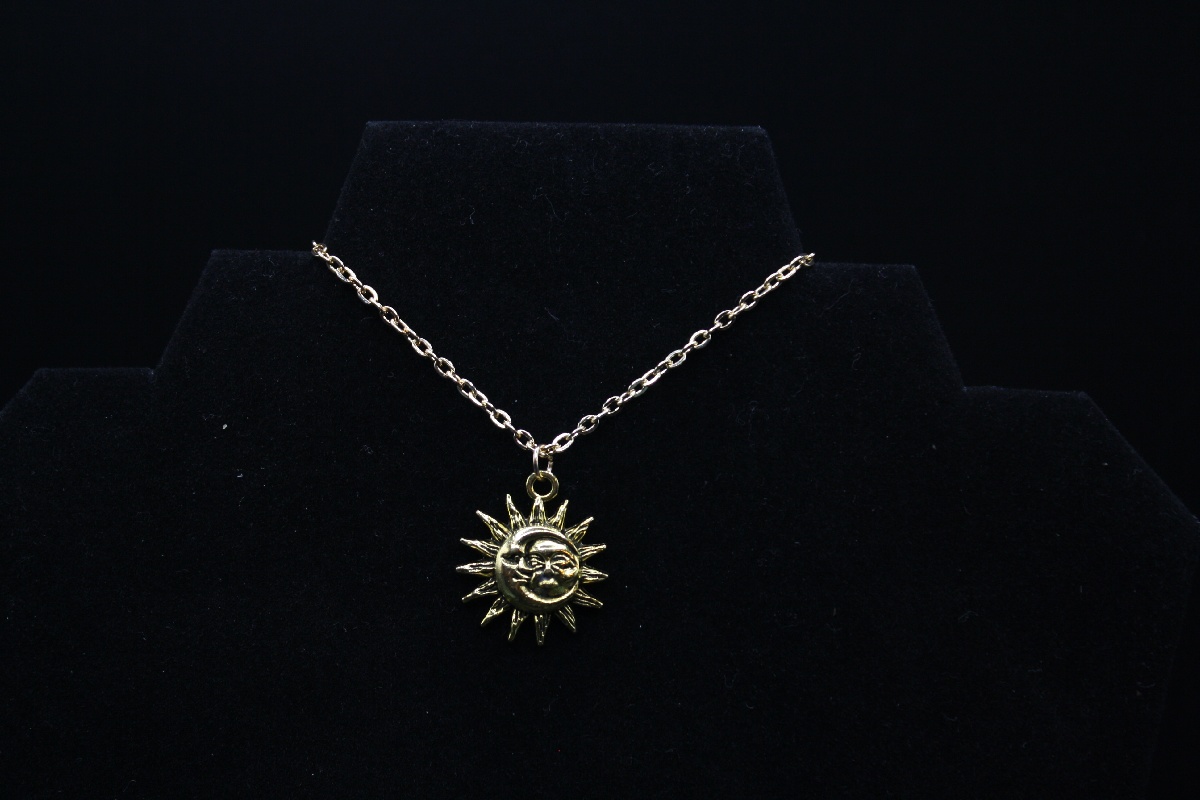 This detailed sun and moon charm creates the perfect statement piece to compliment any outfit the gold plated and sterling silver plated high-quality sun moon charm with a on a dainty sterling silver plated or 14k gold chain in the length of your choice is created with one extra inch of chain.