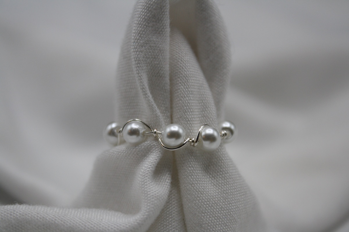 White pearl glass beads with tarnish-free high-quality wire with an alternating up and down pattern.