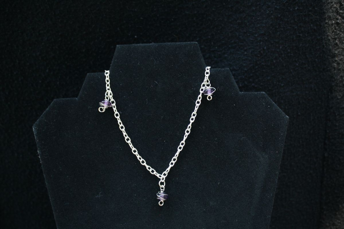 Wire wrapped crystals on a silver chain necklace with a lobster clasp closure. Extra 1 inch of chain added for adjustment to personal fit preference.